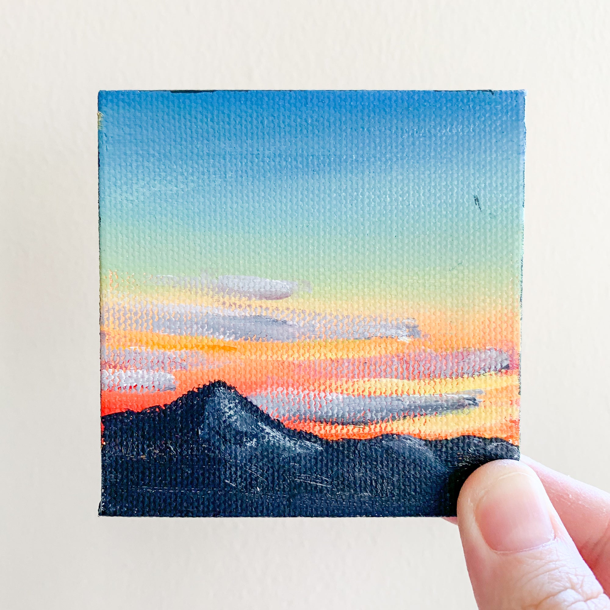 Mountain Sunset Landscape Original Acrylic Painting 3x3 Tiny Art April Bern Art Photography
